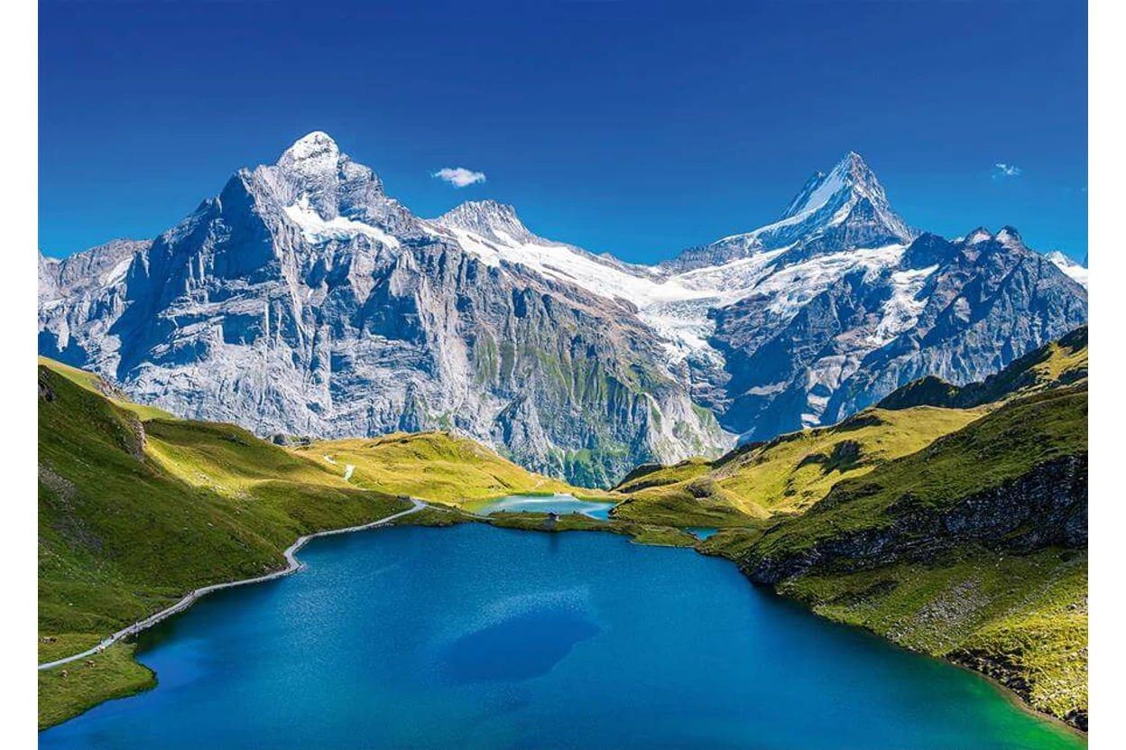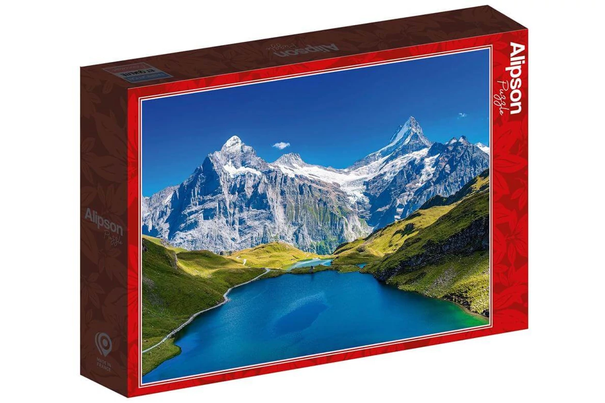 Az Alpok békés tava és a hófödte csúcsok festői látképe elevenedik meg a kirakóban. Az Alipson 50019 - Bachalp Lake, Alps - 1000 db-os puzzle ideális választás a természet és a hegyvidék szerelmeseinek.
