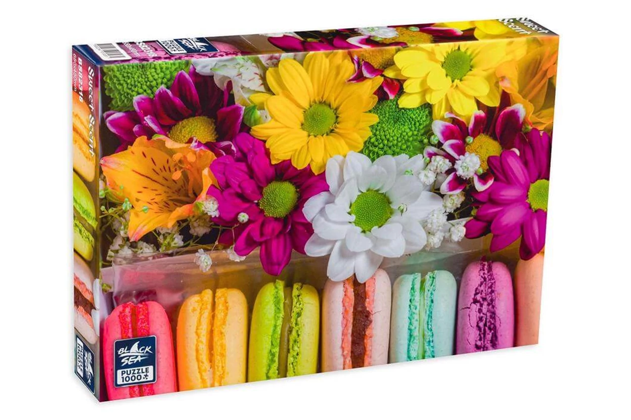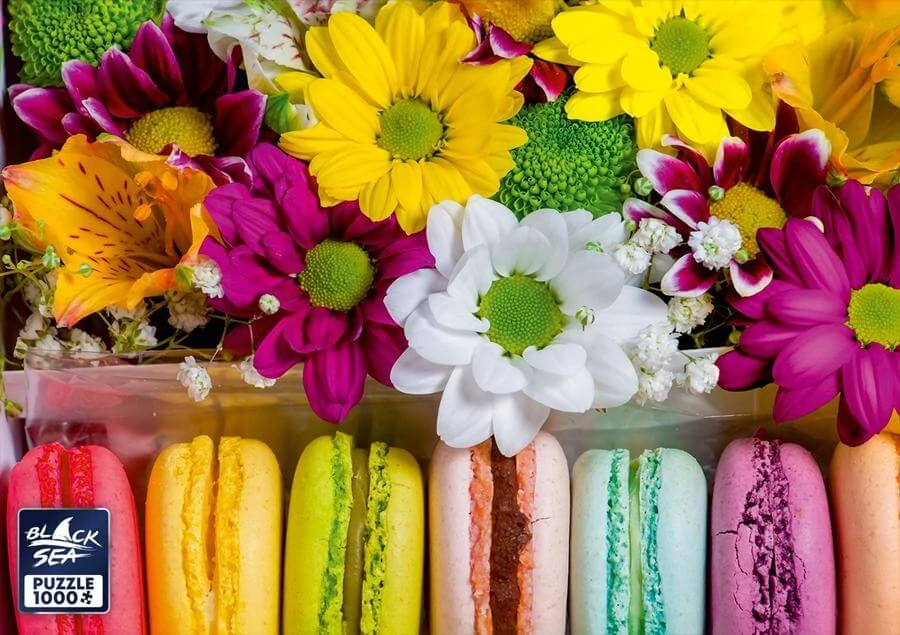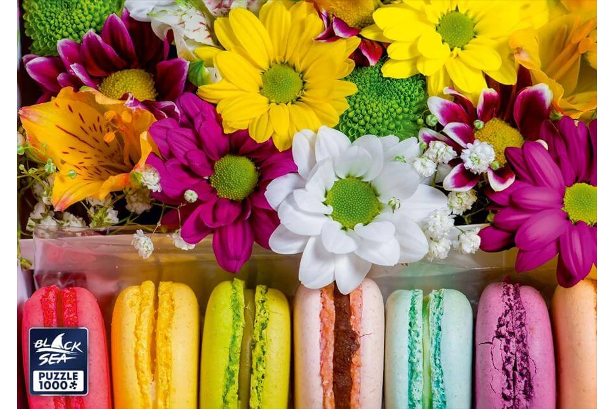 Mesés virágok és ínycsiklandó macaronok világába repít ez a romantikus kép. Finom színek és lágy hangulat jellemzik a Black Sea BS82318 - Sweet Scent - 1000 db-os puzzle művészi kompozícióját.