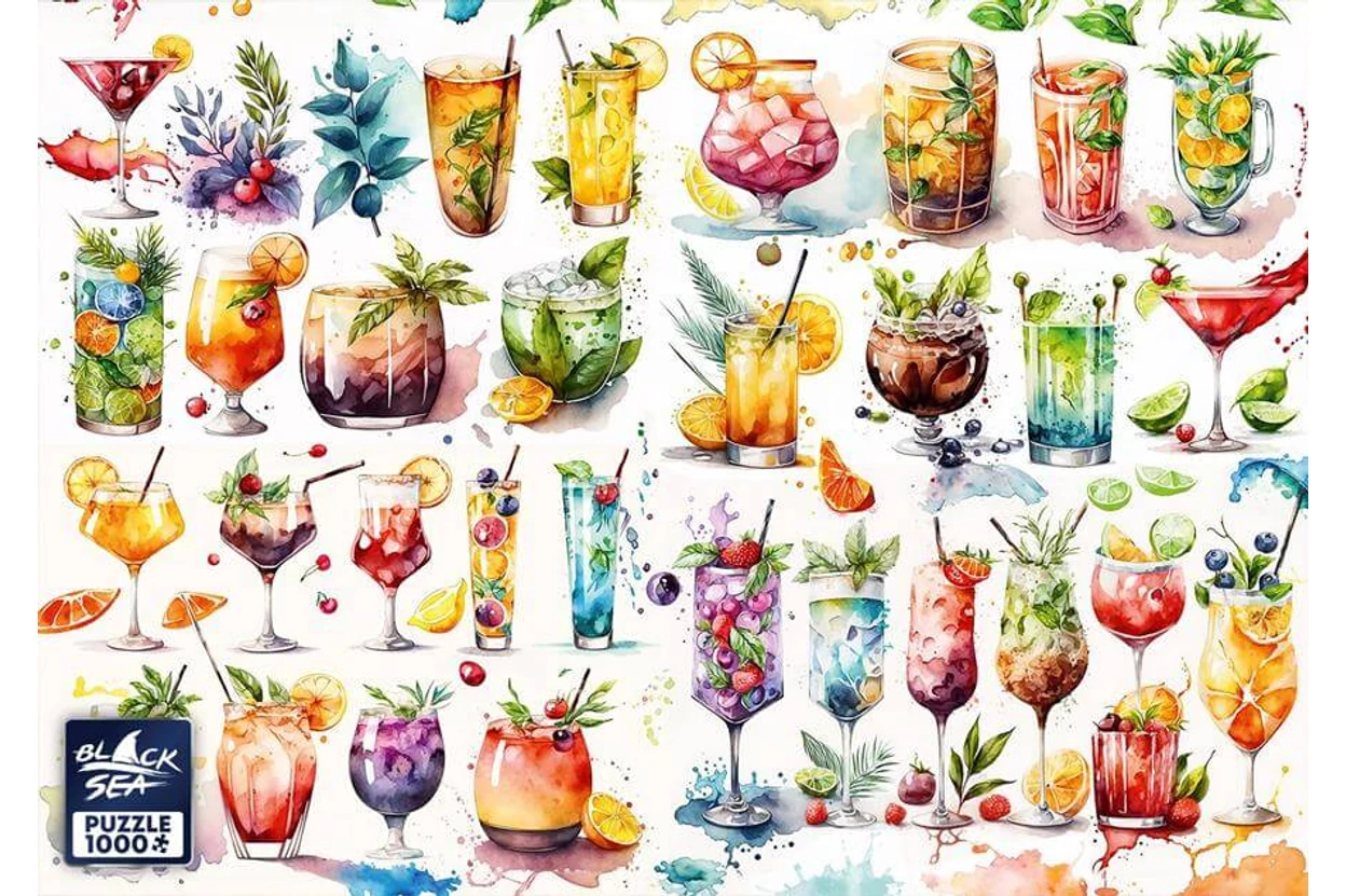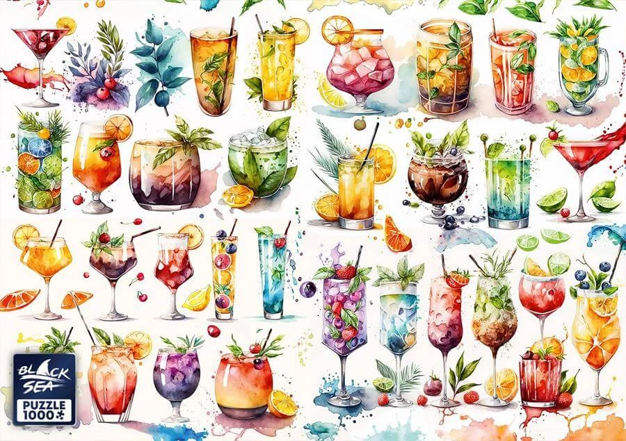Gyönyörű koktélok színes kavalkádja elevenedik meg a Black Sea BS82323 - Happiness Bar - 1000 db-os puzzleképén. Modern, mégis otthonos kirakó a pozitív hangulat kedvelőinek