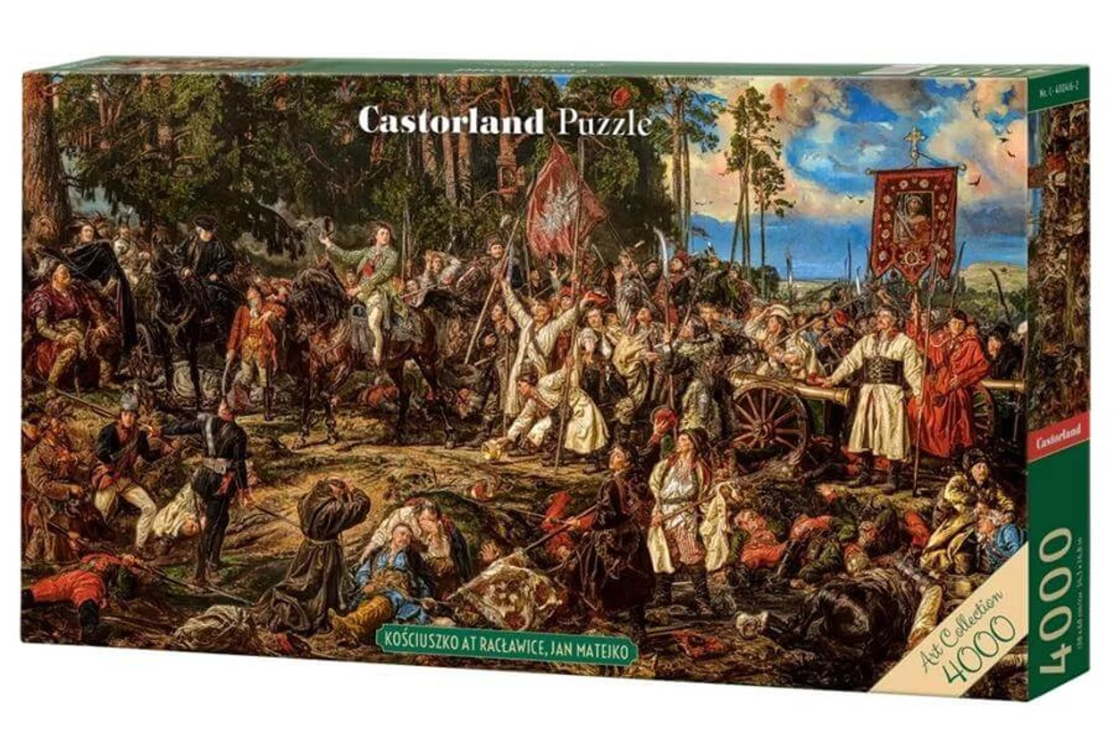 Jan Matejko lengyel festő 1888-ban készített romantikus, historikus stílusú festménye Lengyelország egyik fontos történelmi eseményét ábrázolja. fedezd fel a kép izgalmas részleteit és kapcsolódj ki a Castorland 4000 db-os puzzle - Kosciuszko Raclawicénél (C-400416) kirakóval!