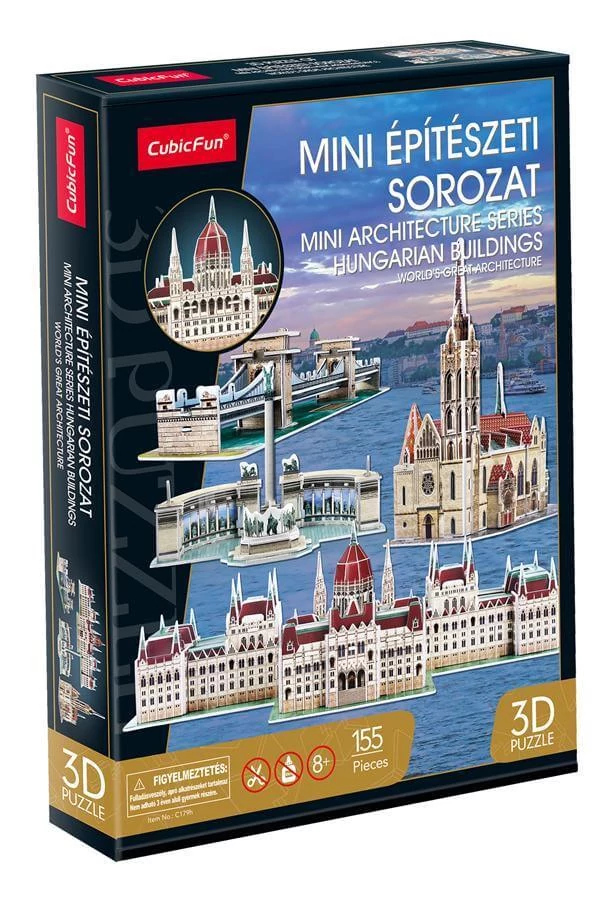 A CubicFun C179 - Mini magyar épületek - 155 db-os 3D puzzle több ismert magyar épület miniatűr változatát tartalmazza. A készlettel megépítheted a Parlamentet, a Mátyás-templomot, a Lánchidat és a Hősök terét is! Kreatív és ismeretterjesztő élményt nyújt gyermekeknek és felnőtteknek