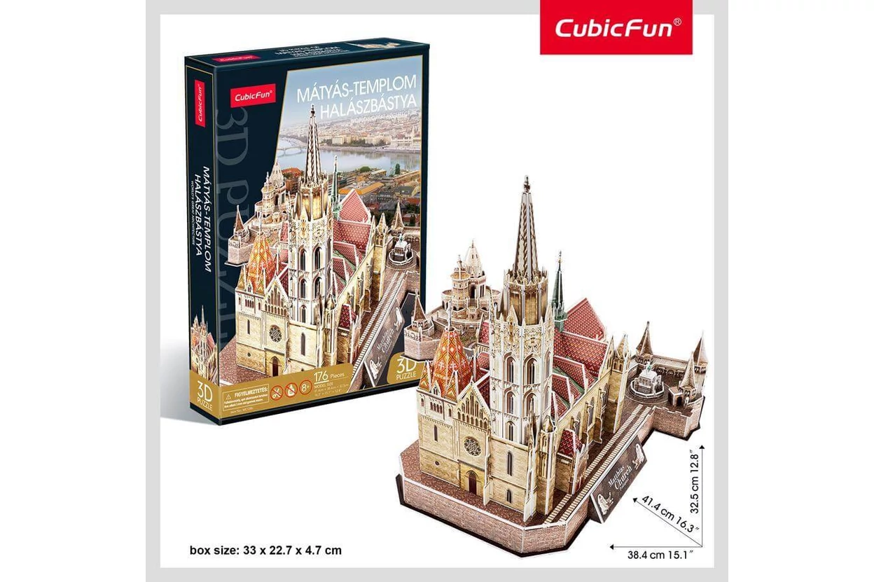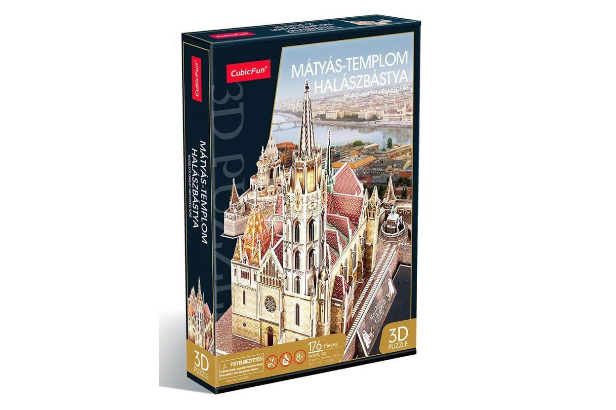 Két ikonikus budapesti műemlék egyetlen készletben. A CubicFun MC128 - Mátyás-templom, Halászbástya - 176 db-os 3D puzzle magyar kötődésű, elegáns dekoráció.