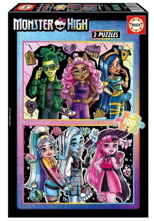 Ez az Educa 2 x 100 db-os puzzle - Monster High puzzle 2 db kirakót rejt. Mindkét kirakó képén a Monster High lányai láthatóak.