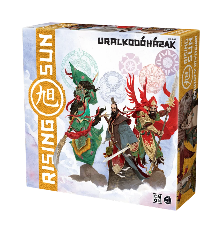 Ez a kiegészítő 2 teljesen új klánt ad a játékosoknak: a Nap és a Hold klánt. Ez lehetővé teszi, hogy a Felkelő Nap játékot akár 6 játékos játssza egyszerre. Nem szükséges semmilyen speciális szabály a 6 játékoshoz, kövessétek az alapszabályokat. Noha mindegyik klán egyedi, az ebben a kiegészítőben található Uralkodóház klánok olyan sajátossággal rendelkeznek, ami mindegyik másik klánnál különlegesebbé teszi őket. Egy másik földről vitorláznak át az óceánon, nem kérnek a japán szörnyek hűségéből, helyette a saját hét Szerencseistenükben bíznak. Ez a kiegészítő egy vadonatúj évszakkártyaszettet is tartalmaz, ami még több lehetőséget és stratégiát ad minden játékhoz, a Hatalmas Kamik használatától függetlenül. A Felkelő Nap - Uralkodóházak kiegészítő nem önálló játék, szükséges hozzá az alapjáték.