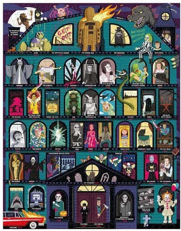 Ez a különleges puzzle a horrorfilmek rajongóinak kötelező darab! Fedezd fel az 50 ikonikus rémisztő filmet a Galison 37466 - 50 Must-Watch Scary Movies Bucket List - 1000 db-os puzzle képén, ami minden borzongáskedvelő szívét megdobogtatja.