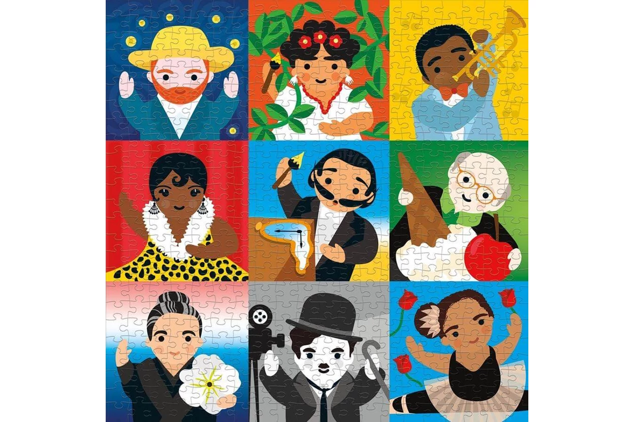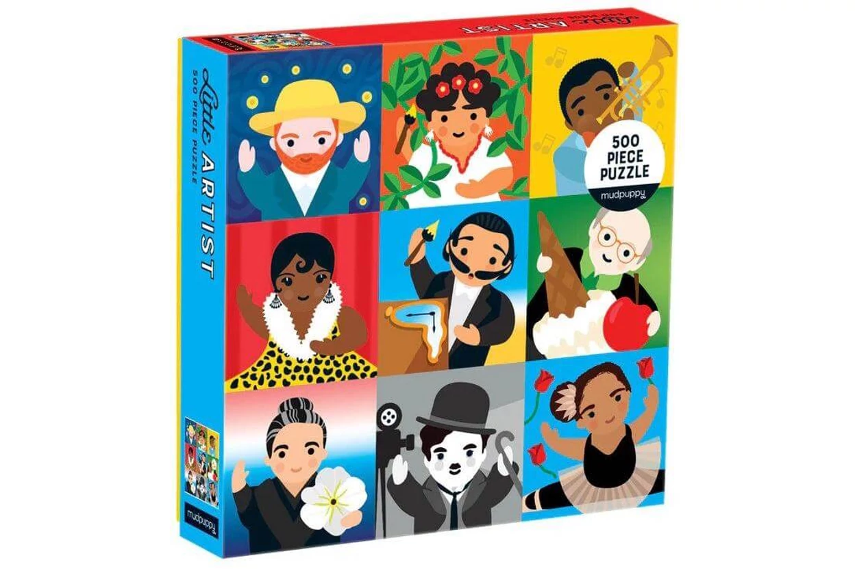 Híres művészek illusztrációi ünneplik a kreativitást a Galison 62321 - Mudpuppy - Little Artist - 500 db-os puzzle képén, úgy, mint Vincent van Gogh, Frida Kahlo vagy Chaplin. Színes, inspiráló kirakó gyerekeknek és felnőtteknek egyaránt.