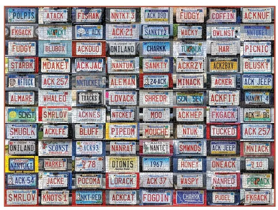 Színes rendszámtáblák kavalkádja idézi meg az amerikai életérzést a Galison 66275 - Nantucket License Plates - 1000 db-os puzzle képén. Vidám és változatos kirakó az autók és Amerika rajongóinak.