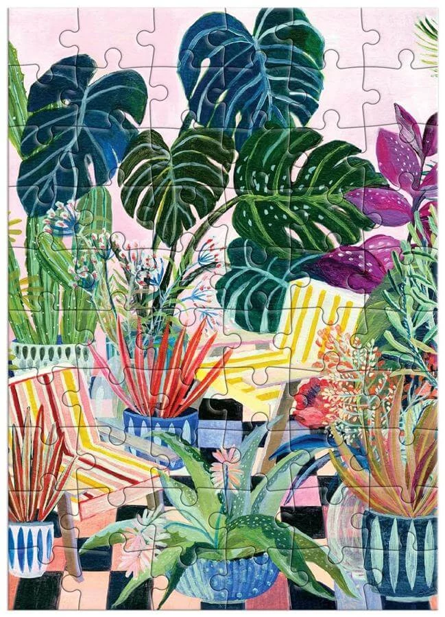 Stílusos, trendi szobanövények díszítik ezt a minipuzzle-t. A Galison 78988 - Potted - 60 db-os Képeslap puzzle modern, letisztult illusztrációja tökéletes választás minden növénykedvelőnek.