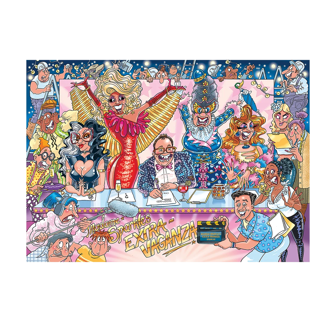 A Jumbo 1000 db-os puzzle - Wasgij Verseny (00013) című képen egy fantasztikus divatbemutató zsűritagjai láthatóak.