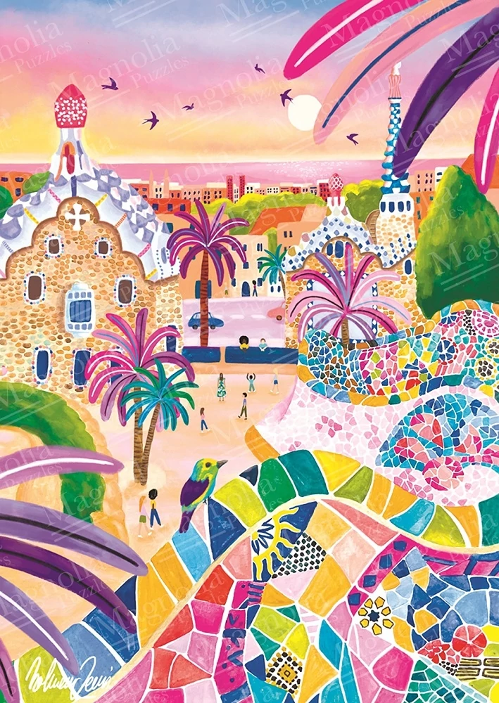 A Magnolia 1000 db-os puzzle - Park Güell (3302) kirakó képén Nolwenn Denis egy híres nyilvános park festménye látható.