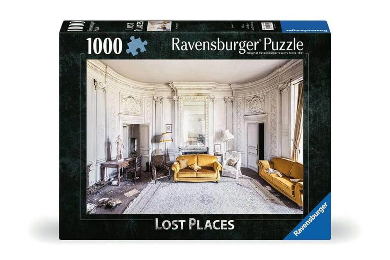 Egy romos, hófehér szobát láthatunk a Ravensburger 12000179 - Lost Places Edition - Fehér szoba - 1000 db-os puzzle képén, ahol a múlt emlékei visszhangzanak. Minimalista, mégis hangulatos kép.
