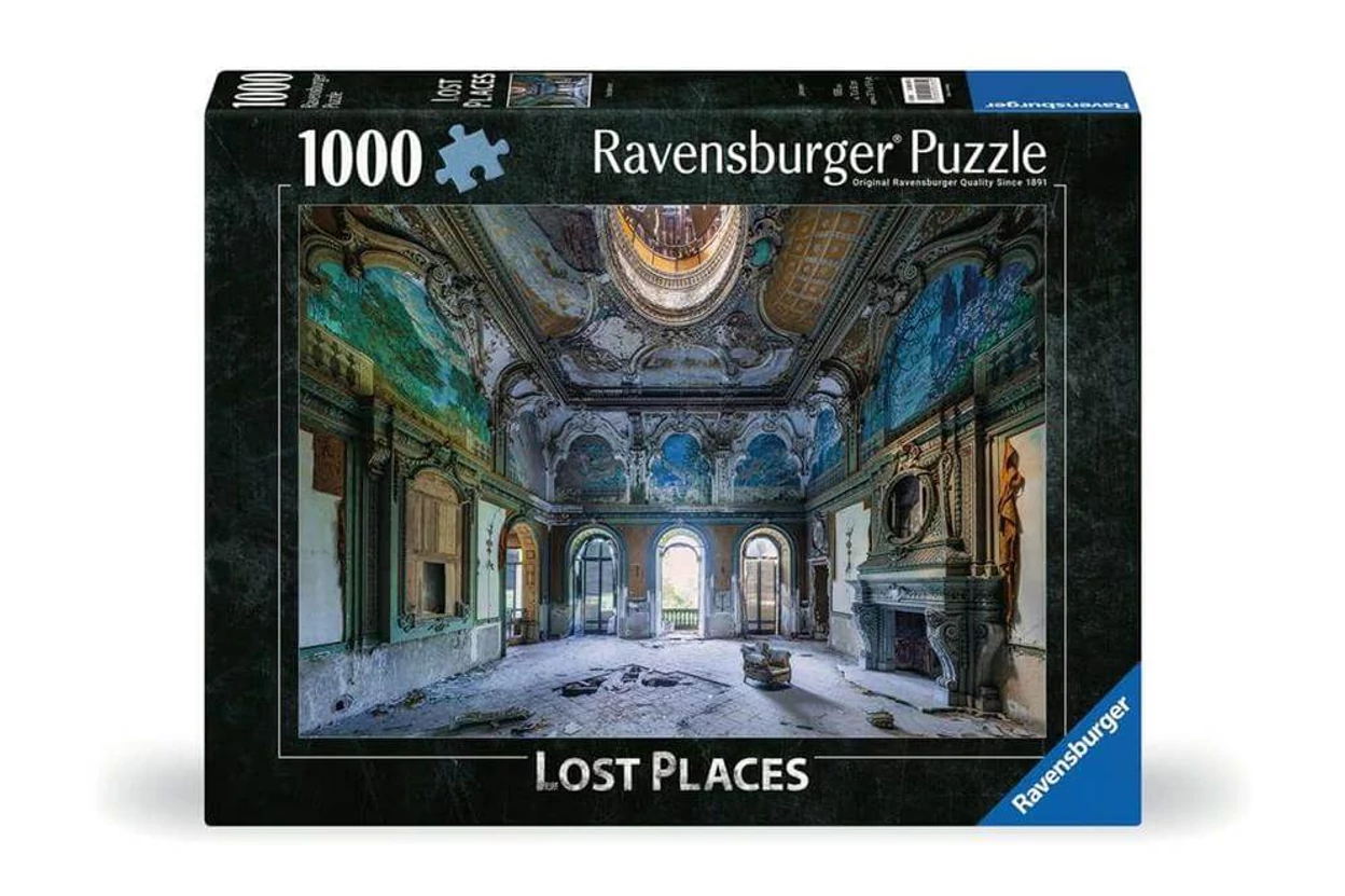 Romos olasz palota elegáns részletekkel és sejtelmes fénnyel. A múlt dicsősége és az enyészet szépsége találkozik a Ravensburger 12000181 - Lost Places Edition - Palazzo - 1000 db-os puzzle képén.