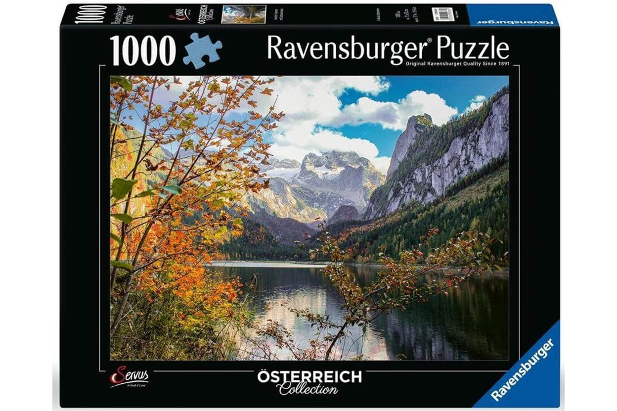 A Ravensburger 1000 db-os - Gosau-tavak puzzle képén a németországi Dachstein gleccser északi oldalán található Gosau-tavak csodás látképe tárul elénk.