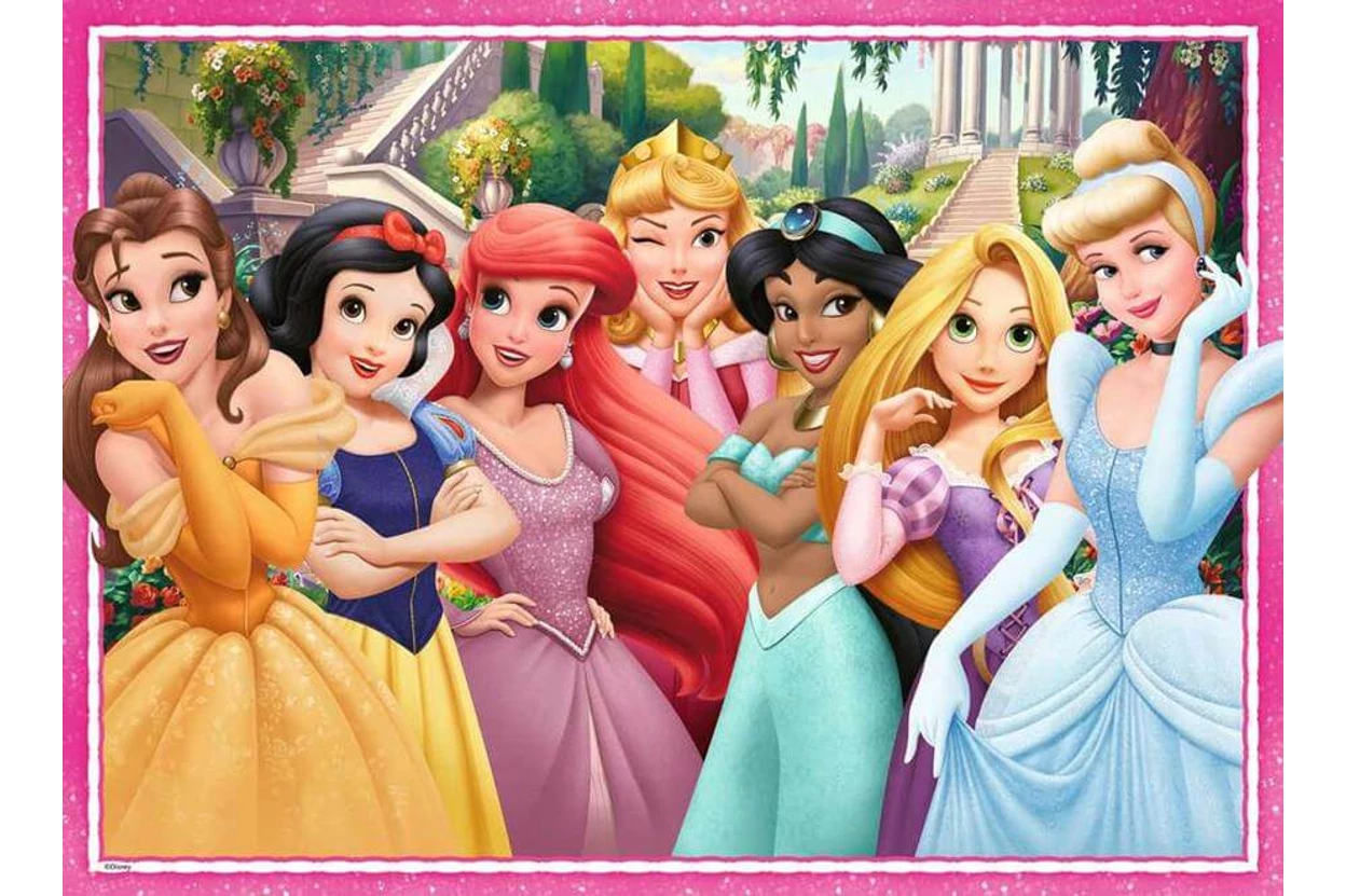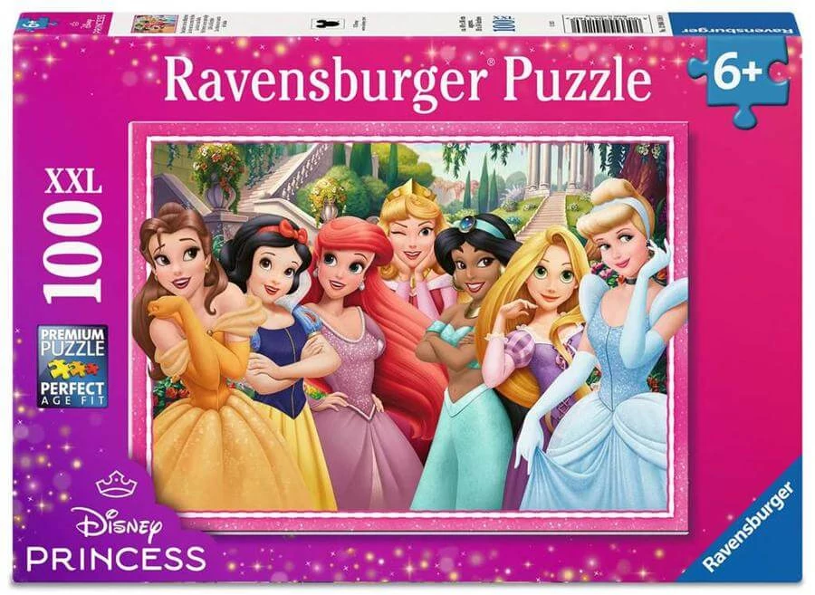 A Disney hercegnők gyönyörű ruháikban és varázslatos díszletek között tündökölnek. A Ravensburger 12004116 - Disney Princess - 100 db-os XXL puzzle képén Belle, Hófehérke, Ariel, Csipkerózsika, Jázmin, Aranyhaj és Hamupipőke kel életre. A nagy méretű darabok megkönnyítik a kirakást, így a kisebbeknek is igazi önfeledt puzzle-élményben lehet részük.