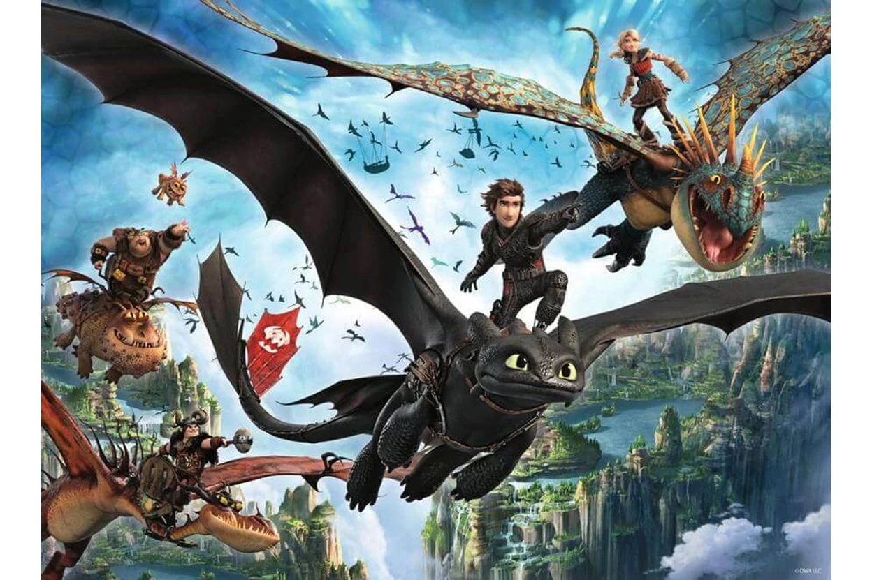 Hablaty és Fogatlan kalandjai elevenednek meg a Ravensburger 12004141 - Így neveld a sárkányodat - 150 db-os XXL puzzle látványos képén. A részletes illusztráció elrepít a sárkányok fantasztikus világába. A nagy méretű darabok megkönnyítik a kirakást, így a kisebbeknek is igazi önfeledt puzzle-élményben lehet részük.