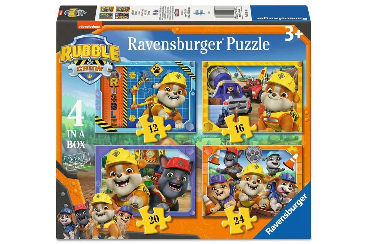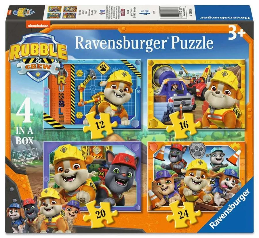 A Mancs őrjárat kedvenc hősei, Rubble és csapata közös küldetéseken szerepelnek. A Ravensburger 12004188 - Mancs őrjárat - 4 az 1-ben puzzle (12,16,20,24 db-os) puzzle színes képei tele vannak lendülettel és kalanddal.