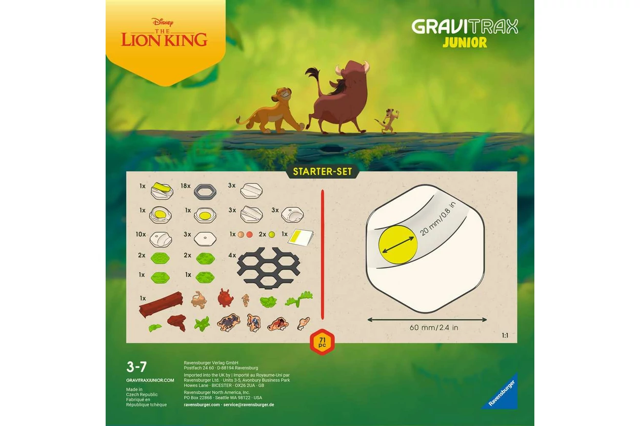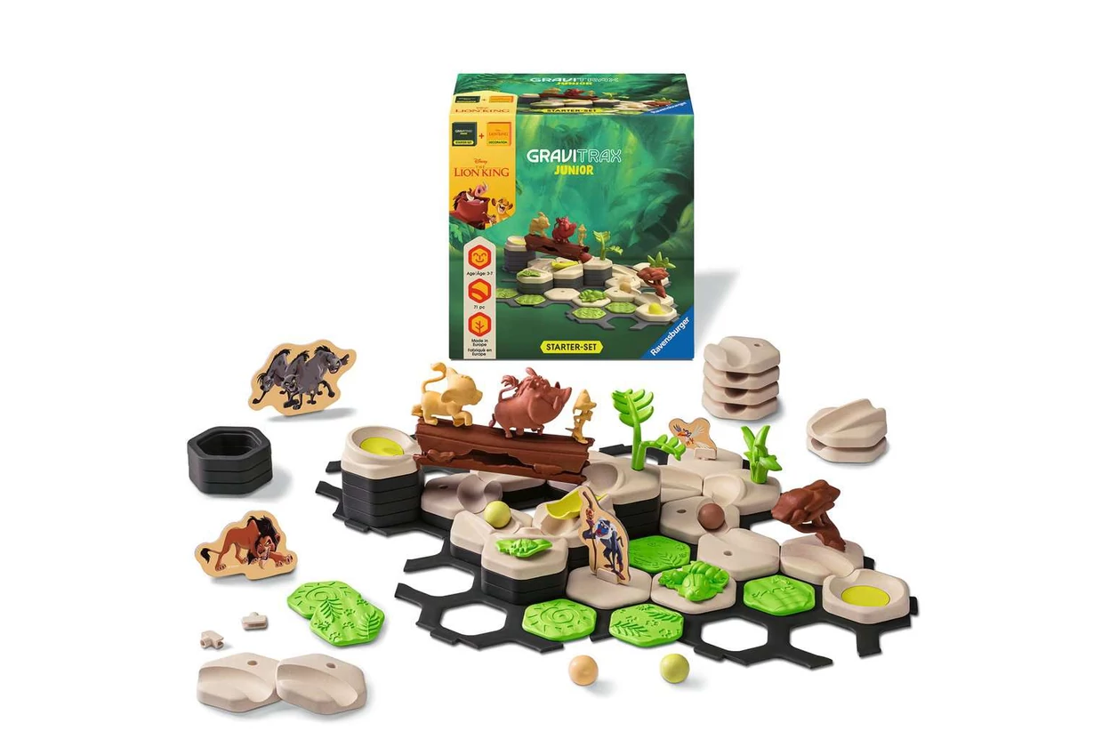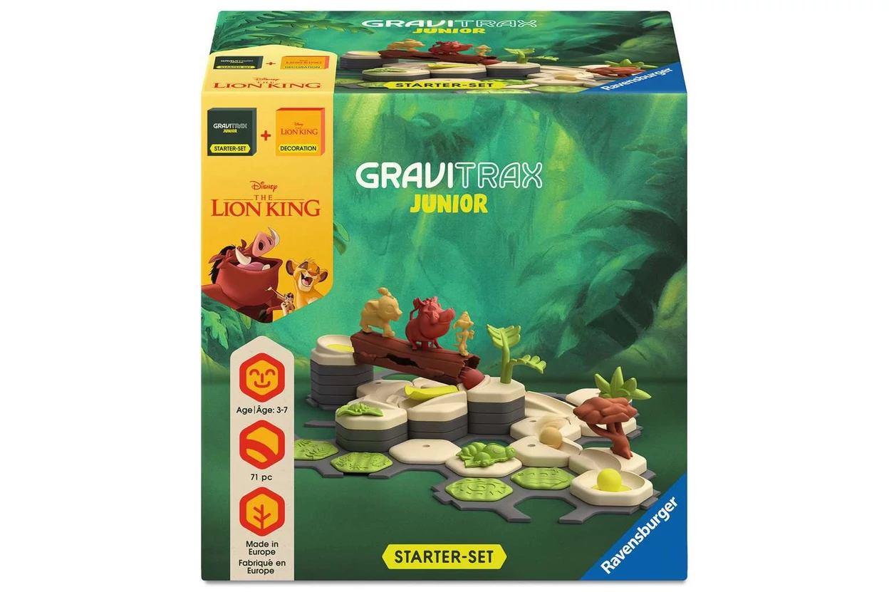 Kalandozz kedvenc Disney hőseiddel és fedezd fel a kreativitás és gravitáció izgalmas világát a Ravensburger - GraviTrax JUNIOR Oroszlánkirály kezdő készlettel (73437)! Ez az 71 darabból álló, Oroszlánkirályos témájú készlet már 3 éves kortól remek szórakozást nyújt. A biokompozit anyagokból készült elemekkel könnyedén építhető egyedi golyópálya fejleszti a térlátást, finommotorikát és logikus gondolkodást, miközben a legkisebbek is megtapasztalhatják a gravitáció csodáját és az ok-okozati összefüggéseket. A készlet könnyen bővíthető más Gravitrax Junior kiegészítőkkel, így a játék sosem válik unalmassá - a pályák újra és újra átalakíthatók, izgalmasabbá tehetők.