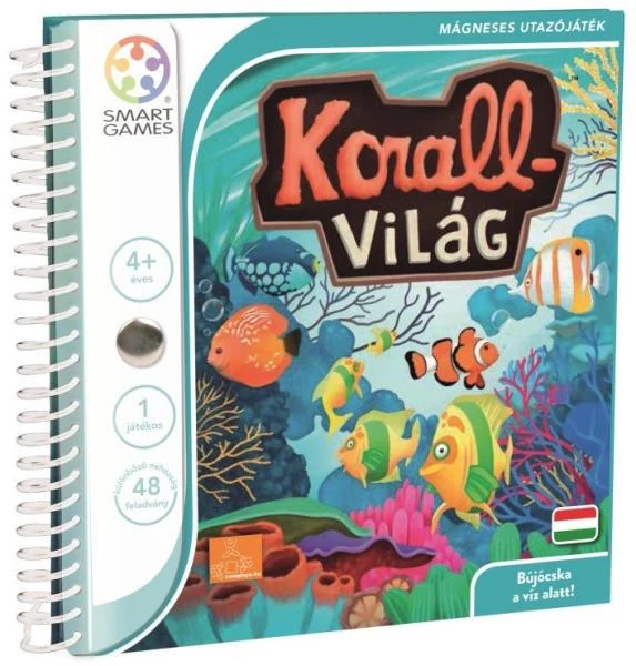 Bújócskázunk a víz alatt? Ebben a játékban az a feladatunk, hogy elbújtassuk a halacskákat a korallok mögé. Tedd fel a négy mágneses játékelemet úgy a táblára, hogy csak a feladatban lévő állatok látszódjanak. A Korallvilág egyszemélyes mágneses utazójáték 48 feladvánnyal, az egyszerűtől az igazán összetettig. Kiválóan fejleszti a koncentrációt, problémamegoldást, és a logikát.