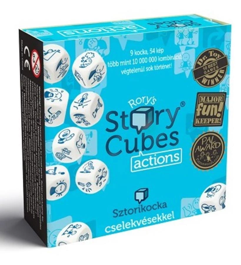 Dobj a kockákkal és találj ki egy történet a képek alapján! A Sztorikocka versengésmentes szórakozást kínál, lehet játszani többen vagy akár egyedül is. Mesélj szabadon! Egyetlen szabály van: nincsenek rossz válaszok. Folytassátok egymás történeteit, vagy meséljetek egyénileg. A cselekvéseket ábrázoló képekkel mozgalmas, élettel teli történeteket alkothatsz. Esti mesék, történetek utazáshoz, beszélgetni és hallgatni, kreativitás, hangulatteremtés, ötletesség.