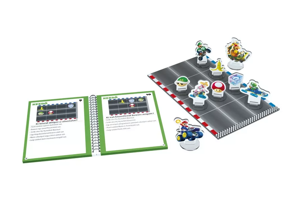 A Thinkfun Super Mario – Mariokart logikai játék a versenyek izgalmát és a logikai kihívások örömét hozza el Neked! Engedd szabadjára a belső stratégát ezzel a 40 kihívást tartalmazó játékkal, amelyek kezdő szinttől a szakértőkig terjednek. A játék célja, hogy a tippeket és a kihívásokat megoldva újrajátszd a Mario Kart versenyek legemlékezetesebb pillanatait. A játék kiváló agyserkentő tevékenység, ami egyedül vagy akár a család többi tagjával együtt is élvezhető.