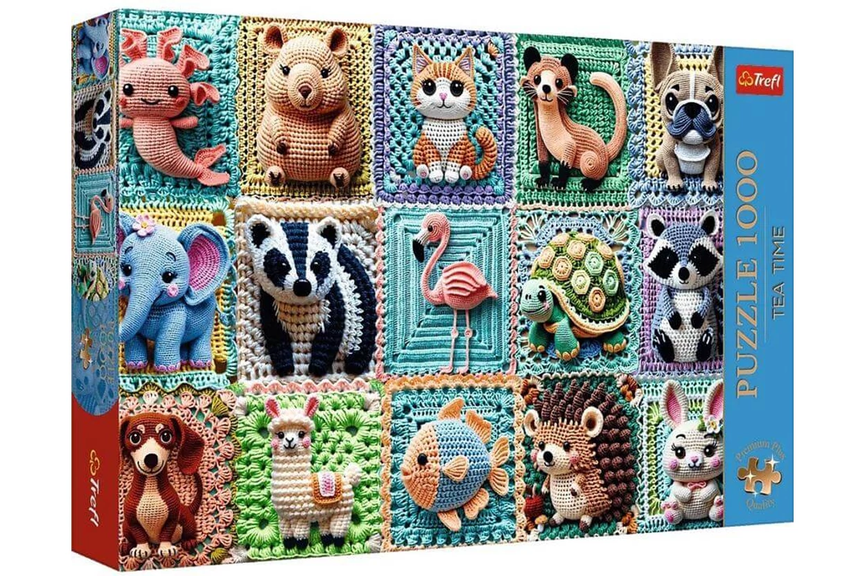 Aranyos, kézzel horgolt állatfigurák teszik különlegessé a képet. A Trefl 12093 - Tea Time - Horgolt állatok - 1000 db-os Premium Plus puzzle meleg, otthonos hangulatot árasztó képe tökéletes választás az állatok és a horgolás szerelmeseinek.