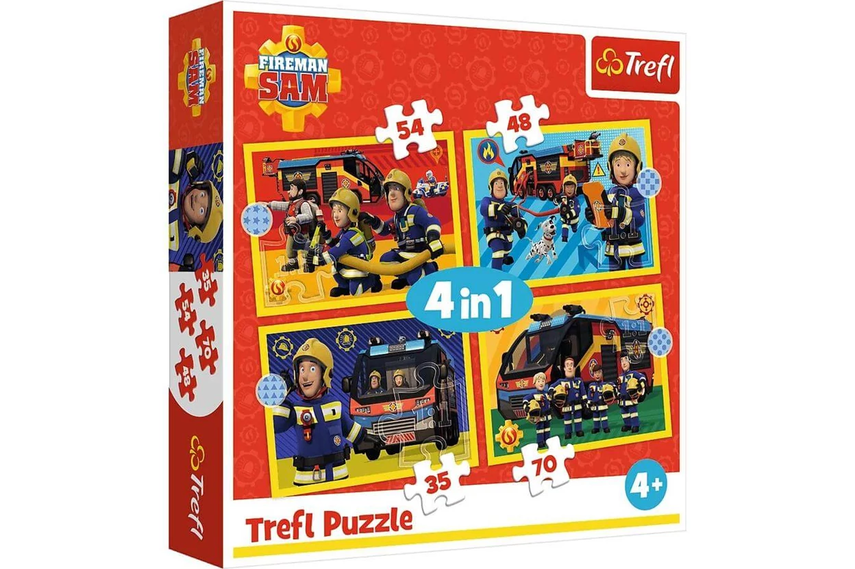 Indulj bevetésre kedvenc tűzoltóddal és barátaival! A Trefl 34348 - Sam, a tűzoltó - 4 az 1-ben (35,48,54,70 db-os) puzzle képein a népszerű mese hősei elevenednek meg.