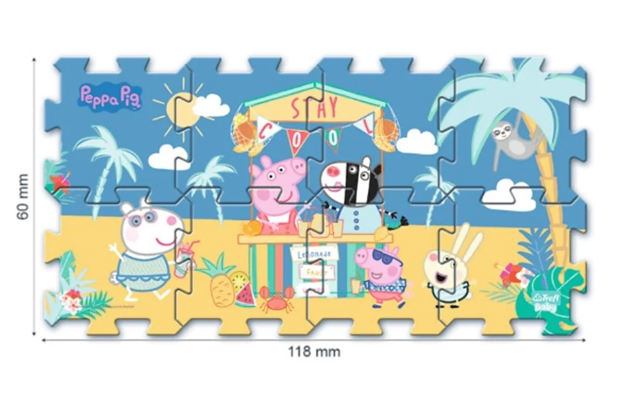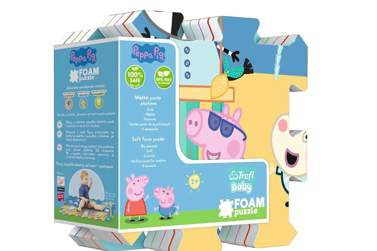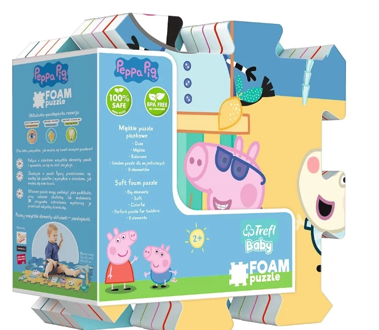 Fedezd fel a Trefl 61363 - Peppa malac nyara 8 db-os szivacs puzzle vidám és színes világát! Ez a puha, könnyen kezelhető szivacspuzzle kifejezetten a legkisebbeknek készült, akik most ismerkednek a formákkal és a színekkel. A Peppa malac nyári motívumai játékosságot és vidámságot csempésznek a mindennapi játékba, miközben fejlesztik a kézügyességet, a finommotorikát és a vizuális észlelést. Ideális ajándék 1-3 éves gyerekeknek, otthoni játékhoz vagy óvodai foglalkozásokhoz. A Trefl kiváló minősége biztosítja a tartósságot, így hosszú időn keresztül örömet nyújt a gyermekeknek. Válaszd a Peppa malac szivacspuzzle-t, és támogasd játékosan gyermeked kreativitását és képzelőerejét!