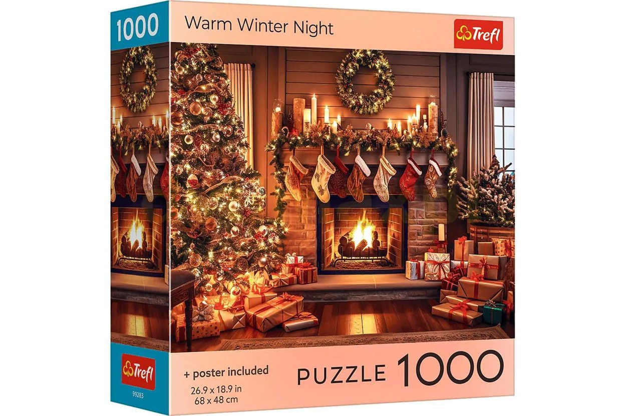 Meghitt karácsony este vár rád ebben a szobában, ahol a kandalóban ropog a tűz, a csodás karácsonyfa alatt pedig temérdek ajándék vár kibontásra. A Trefl 99283 - Meleg téli este - 1000 db-os puzzle minden darabja otthonos és hangulatos.