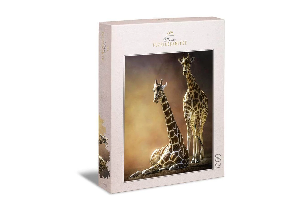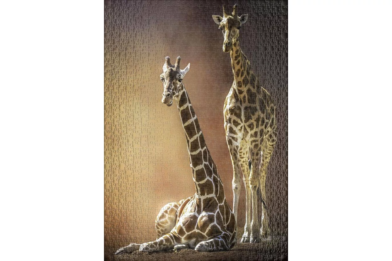 Szépséges zsiráfpárt ábrázol az Ulmer 1432 - Giraffe Love - 1000 db-os puzzle lenyűgöző fotója. A részletek és a játékos hangulat minden darabot szerethetővé tesznek.