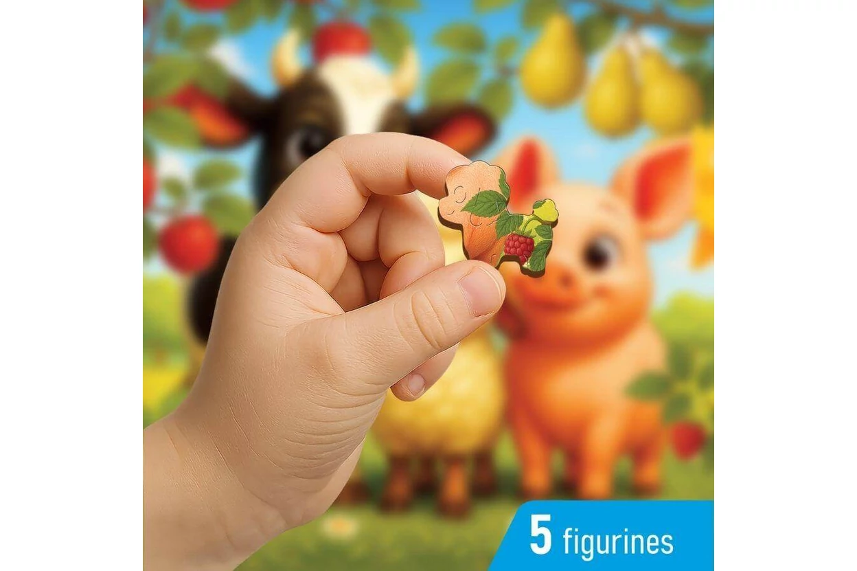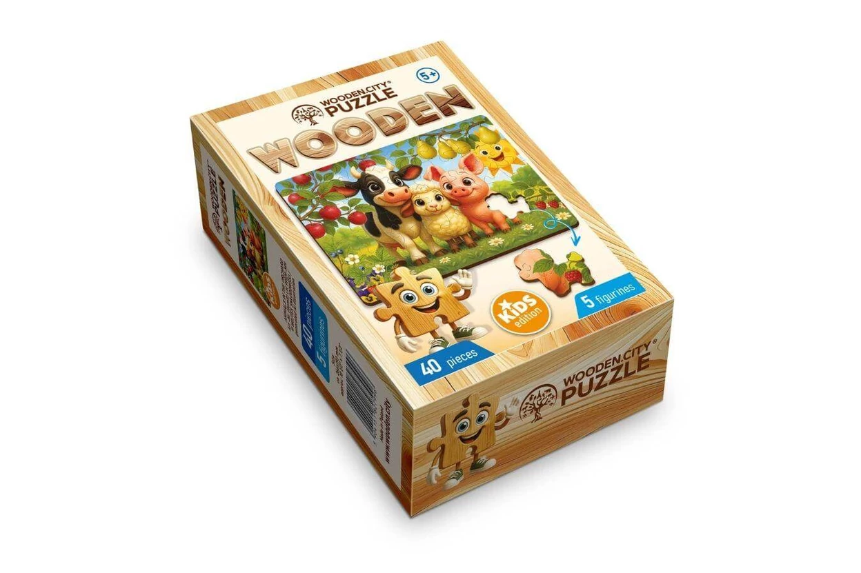 A 40 db-os kirakók a legkisebbeknek készültek és 5 db egyedi formájú darabkát tartalmaznak az extra puzzle élményért. Barátságos háziállatok várják, hogy életre keljenek a Wooden City CH99129-MH - Állatok a farmon - 40 db-os fa puzzle képén. Rövid, vidám játékélményt nyújt a kisebb gyerekeknek.