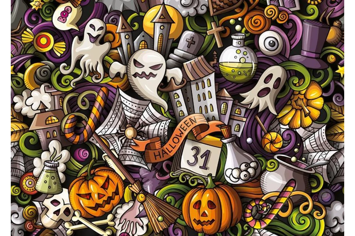 A Yazz 1000 db-os puzzle - Halloween (3872) kirakó képén ikonikus Halloween-i minta látható.